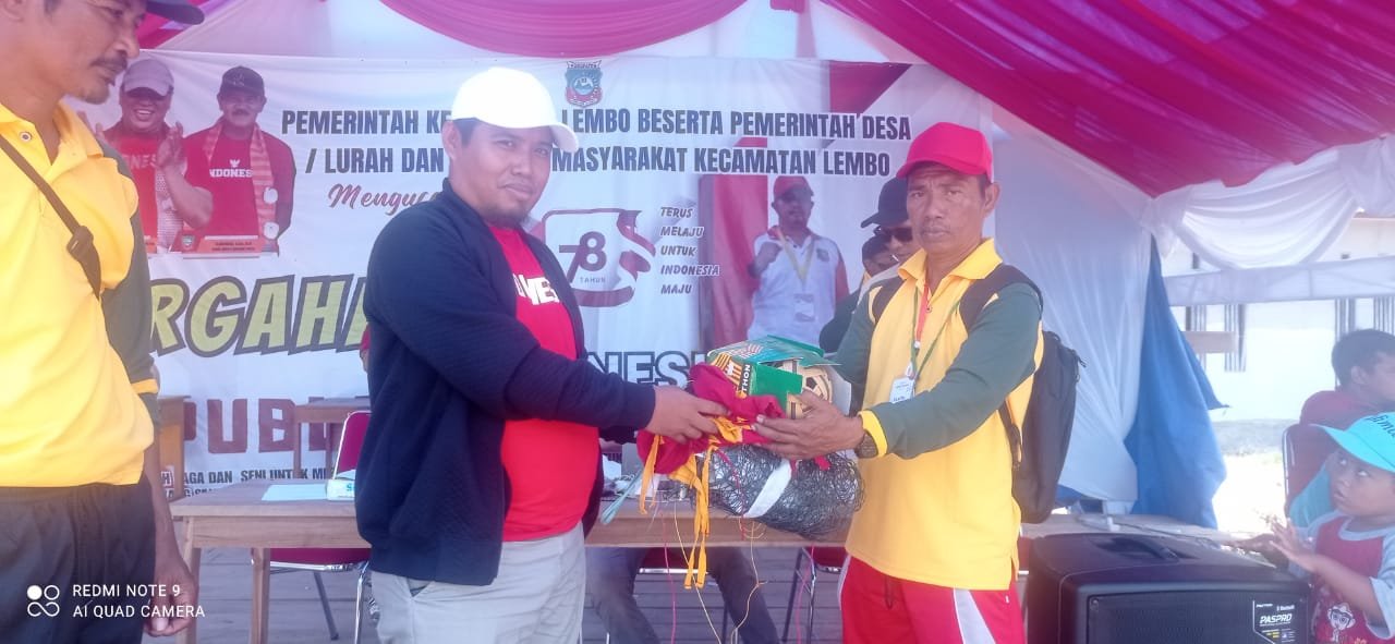 “Ketua panitia penyelenggarah kecamatan lembo  Irsan Kia Mekuo S,HUT menyampaikan kepada seluruh seksi kegiatan bidang olah raga yang di pertandingan supaya menjaga keamanan dan ketertibannya dalam memeriahkan HUT RI yang ke 78, salah satu kegiatan yang kita apresiasi bidang olah raga sepak takraw sudah berakhir tadi dan berlangsung aman dan tertib, “kata.ketua panitia kecamatan.