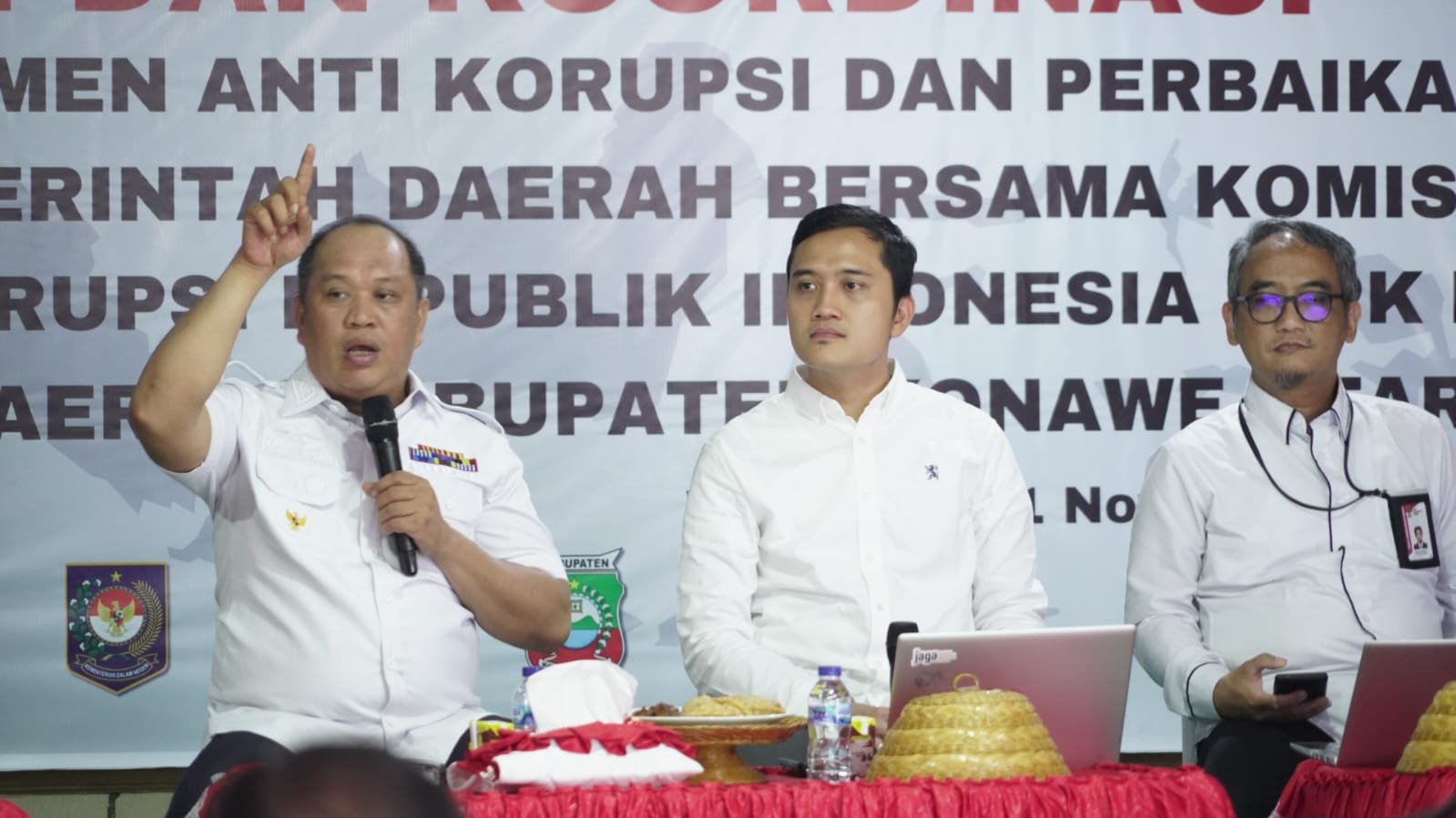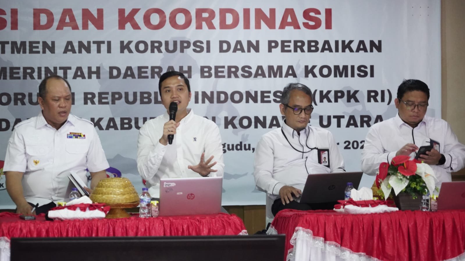 Kegiatan ini diihadiri langsung oleh Bupati Konawe Utara Dr. Ir. H. Ruksamin, ST., M.Si., IPU., ASEAN. Eng, Perwakilan KPK RI Sulawesi diantaranya Korwi SULTRA, Korwil SULSEL, dan Korwil SULTENG, Wakil Ketua DPRD KONUT, Asisten / Staf Ahli, Kepala OPD, serta para Camat se-Kab. Konawe Utara.