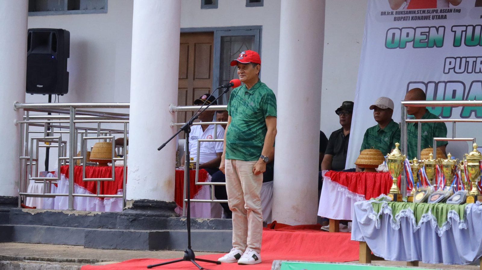 Pemerintah Kabupaten Konawe Utara melalui Dinas Pemuda dan Olahraga Konut menggelar Open Turnamen Bola Voli Putra Putri Bupati Cup 1 Se Sultra.