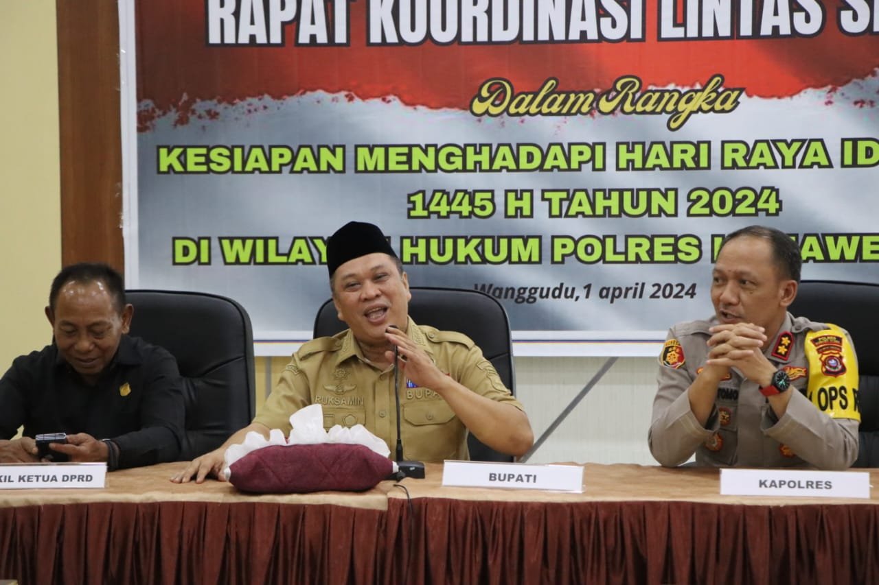 Bupati Konut DR. H. Ruksamin mengatakan agar seluruh stakeholder terkait mempersiapkan segalanya guna menunjang keberhasilan pelaksanaan pengamanan Idul Fitri 2024 di Konawe utara