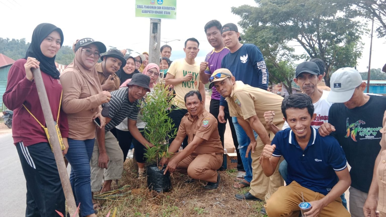 Dinas pendidikan dan kebudayaan kabupaten Konawe Utara, menanam bunga pucuk merah sepanjang 270 meter didepan desa lamondowo kecamatan Andowia.