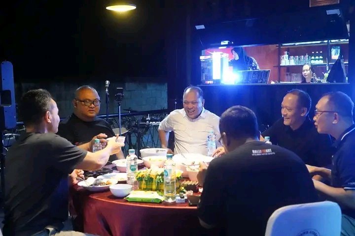 Kunjungan kerja ini diawali dengan makan malam bersama yang diadakan di salah satu kafe di Konawe Utara pada Sabtu malam, 1 Juni 2024.
