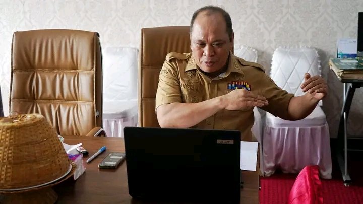 Bupati hadir  secara virtual melalui Zoom Meeting dari kantor Bupati Konawe Utara (Konut), Senin, 3 Juni 2024.