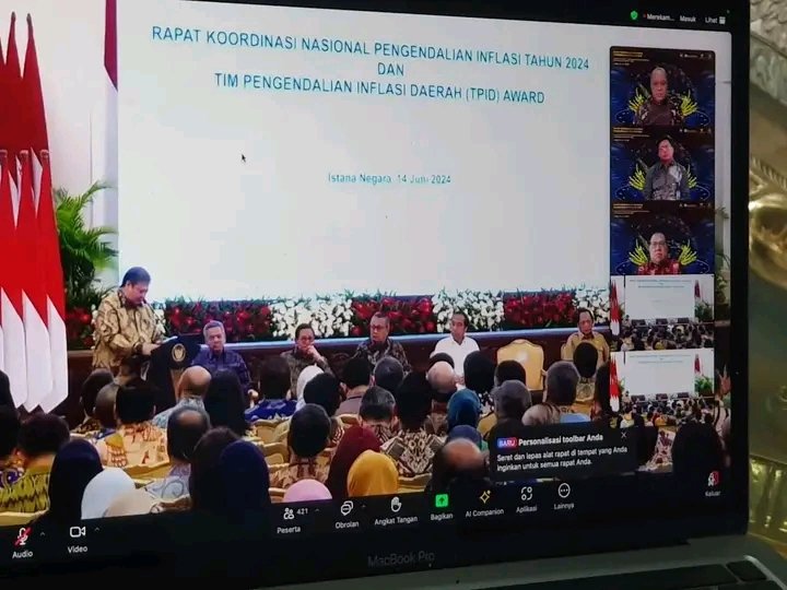 Dalam sambutannya, Presiden Joko Widodo (Jokowi) mengapresiasi kerja keras tim pengendalian inflasi dari tingkat pusat hingga daerah yang telah berhasil mengendalikan inflasi.