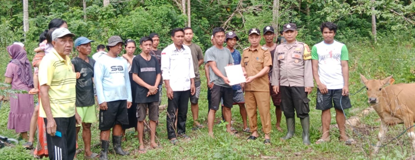 Dalam penyerahan bantuan bibit sapi dan 5 Unit perumahan di saksikan oleh BPD, tokoh dan Babikhantibmas, masyarakat yang penerimah manfaat.