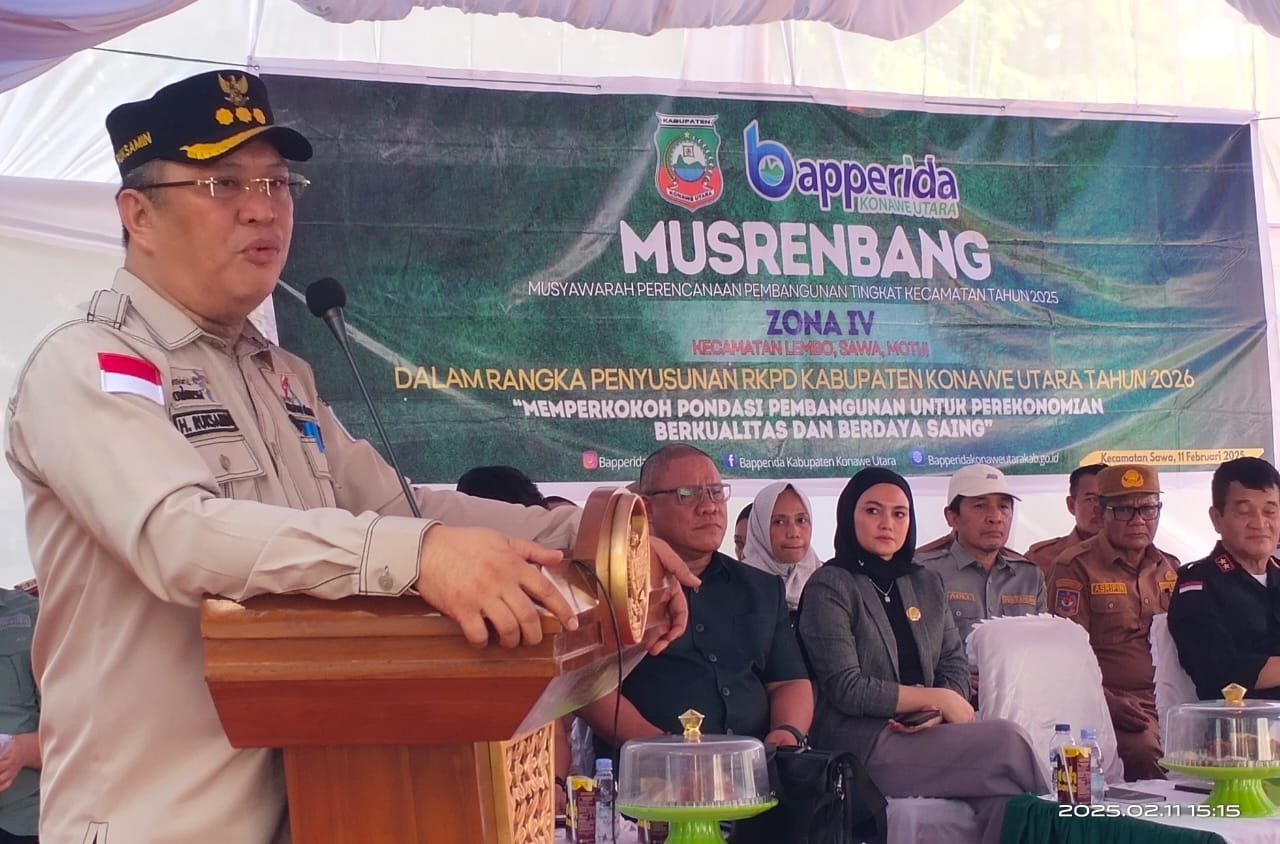 Globaldrafnusantara.com | Konut –Bupati Konawe Utara (Konut) Provinsi Sulawesi Tenggara ( Sultra) H. Ruksamin didampingi Wakilnya H.Abuhaera secara resmi membuka Musyawarah Perencanaan Pembangunan (Musrenbang) tingkat kecamatan dalam rangka penyusunan Rencana Kerja Pemerintah Daerah (RKPD) tahun 2026, pada Selasa 11 Februari 2025.