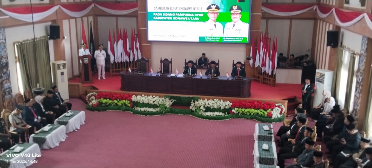 Rapat paripurna tersebut di pimpin langsung Ketua DPRD.Konut, Heman Sewani, SH,dan di dampingi Wakil Ketua I dan Wakil Ketua II, DPRD Konut beserta 13 Anggota DPRD yang hadir dari 20 Anggota DPRD.Konut, bertempat di Aula sidang DPRD. Konut. Selasa, 4 Maret 2025.