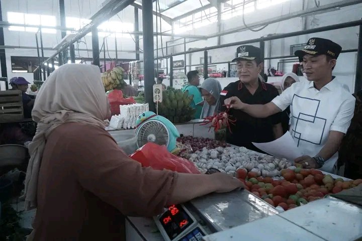 Bupati Konawe Utara (Konut) H. Ikbar, SH., MH., bersama Wakilnya, H. Abuhaera, S.Sos., M.Si., turun langsung meninjau kondisi harga di Pasar Sore, Kelurahan Lamonae, Kecamatan Wiwirano, pada Sabtu (8/3).