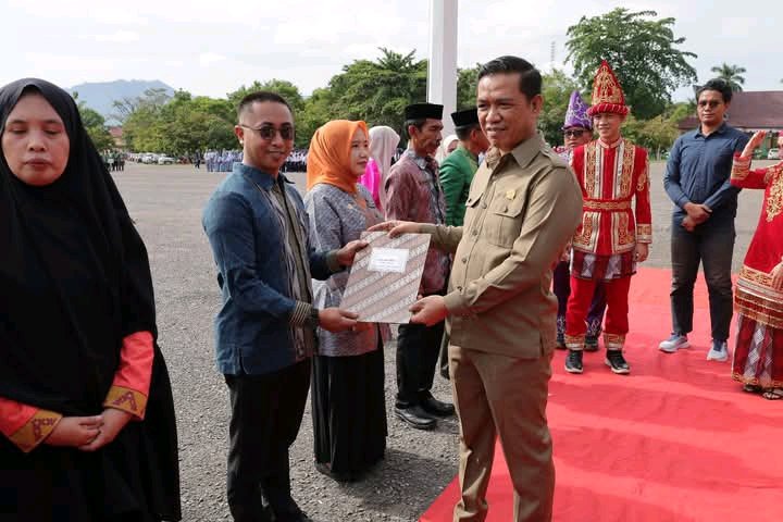 Globaldrafnusantara.Com Konut Bupati Konawe Utara H. Ikbar, SH., MH., pimpin upacara peringatan Hari Pendidikan Nasional (Hardiknas) tahun 2025 di Lapangan Kantor Bupati Konawe Utara. Jum’at 2 Mei 2025.