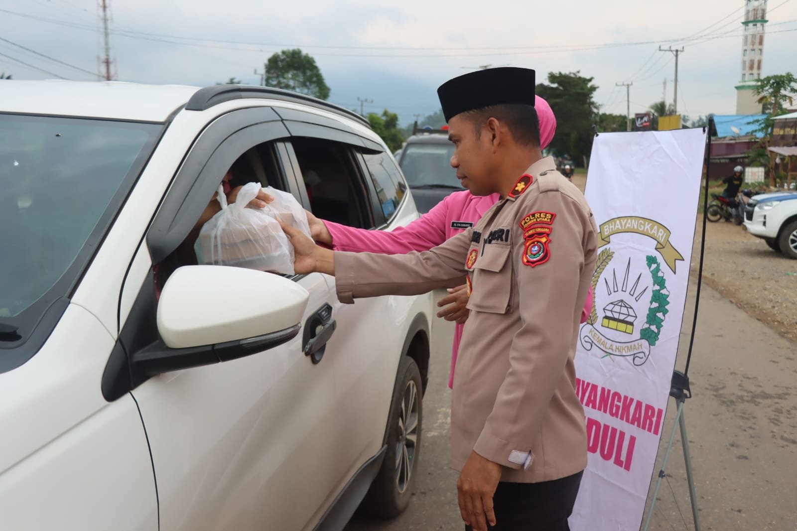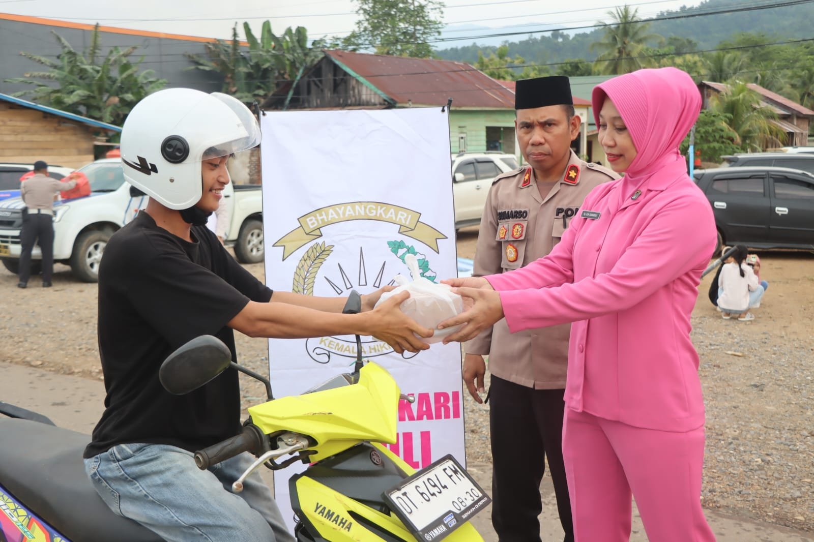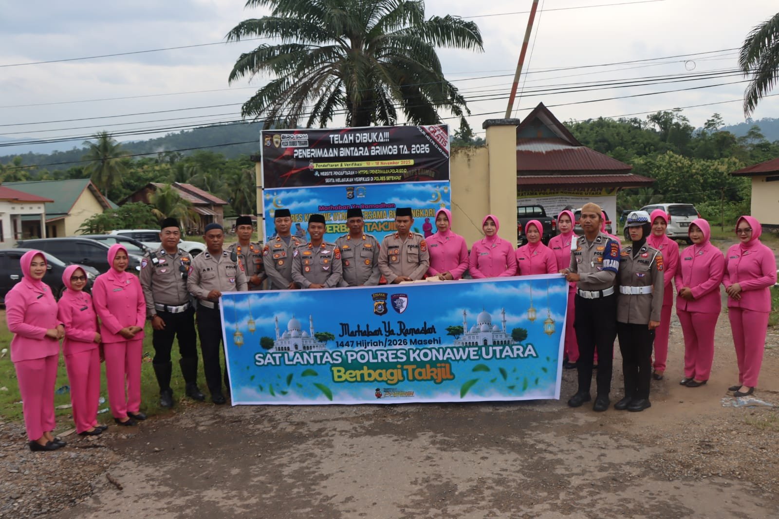 Konawe Utara – Dalam rangka berbagi berkah di bulan suci Ramadan, jajaran Polres Konawe Utara bersama pengurus Bhayangkari Cabang Konawe Utara melaksanakan kegiatan pembagian takjil dan Bhayangkari Peduli kepada masyarakat, Sabtu (28/2/2026) sore.