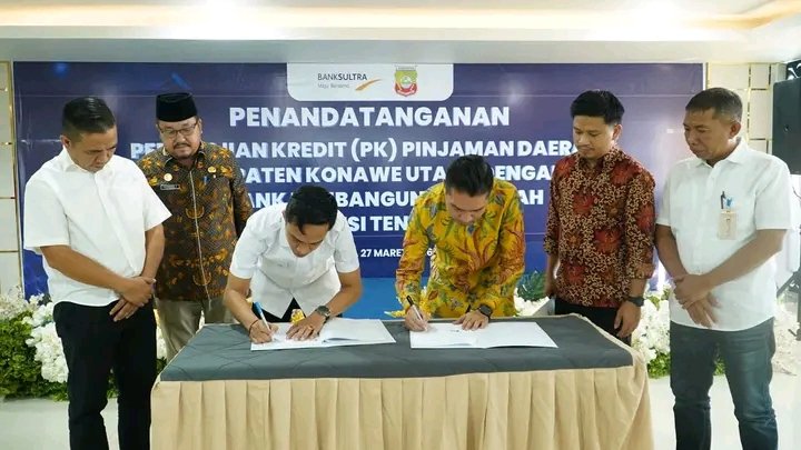 Globaldraf nusantara.Com Pemerintah Kabupaten Konawe Utara resmi menandatangani perjanjian kredit pinjaman daerah dengan PT Bank Pembangunan Daerah Sulawesi Tenggara