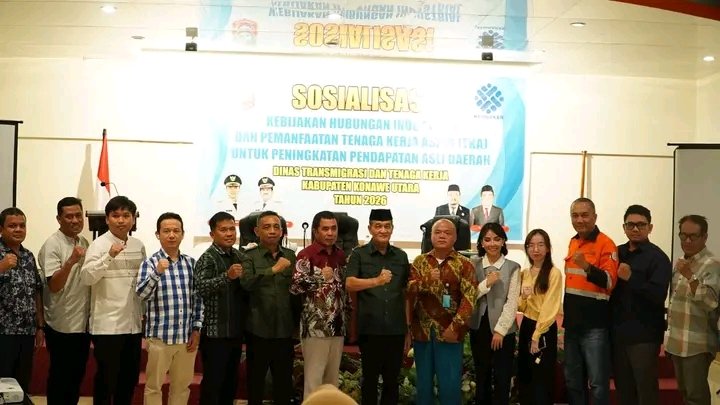 Globaldraf nusantara.Com Bupati Konawe Utara, H. Ikbar, SH., MH., diwakili Wakilnya H. Abuhaera, S.Sos., M.Si., secara resmi membuka kegiatan sosialisasi kebijakan hubungan industrial dan pemanfaatan Tenaga Kerja Asing (TKA) dalam rangka peningkatan Pendapatan Asli Daerah (PAD), Jumat (10/4/2026).